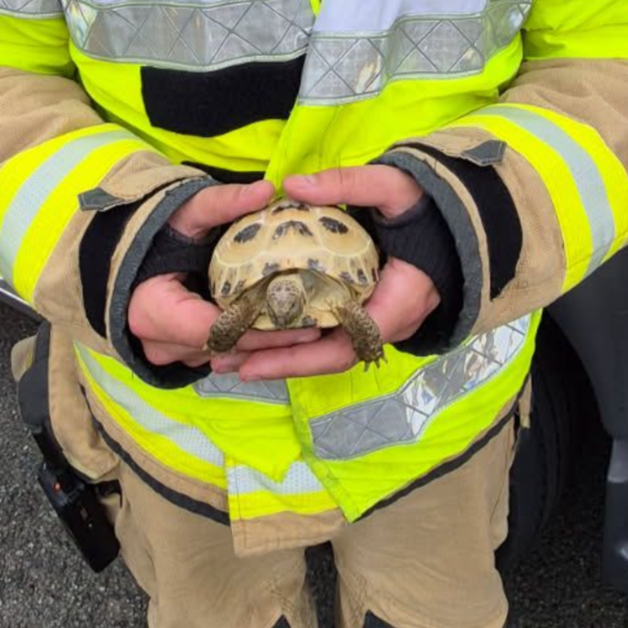 On Monday, June 30th, Firefighters from Pembroke Dock Fire Station attended a property at St Ann’s Crescent in Pembroke. The crew responded to a fire confined to a heating lamp in the tortoise’s enclosure, Firefighters quickly rescued Sheldon from his enclosure and extinguished the fire using two breathing apparatus sets, one hose reel jet and one positive pressure ventilation fan.