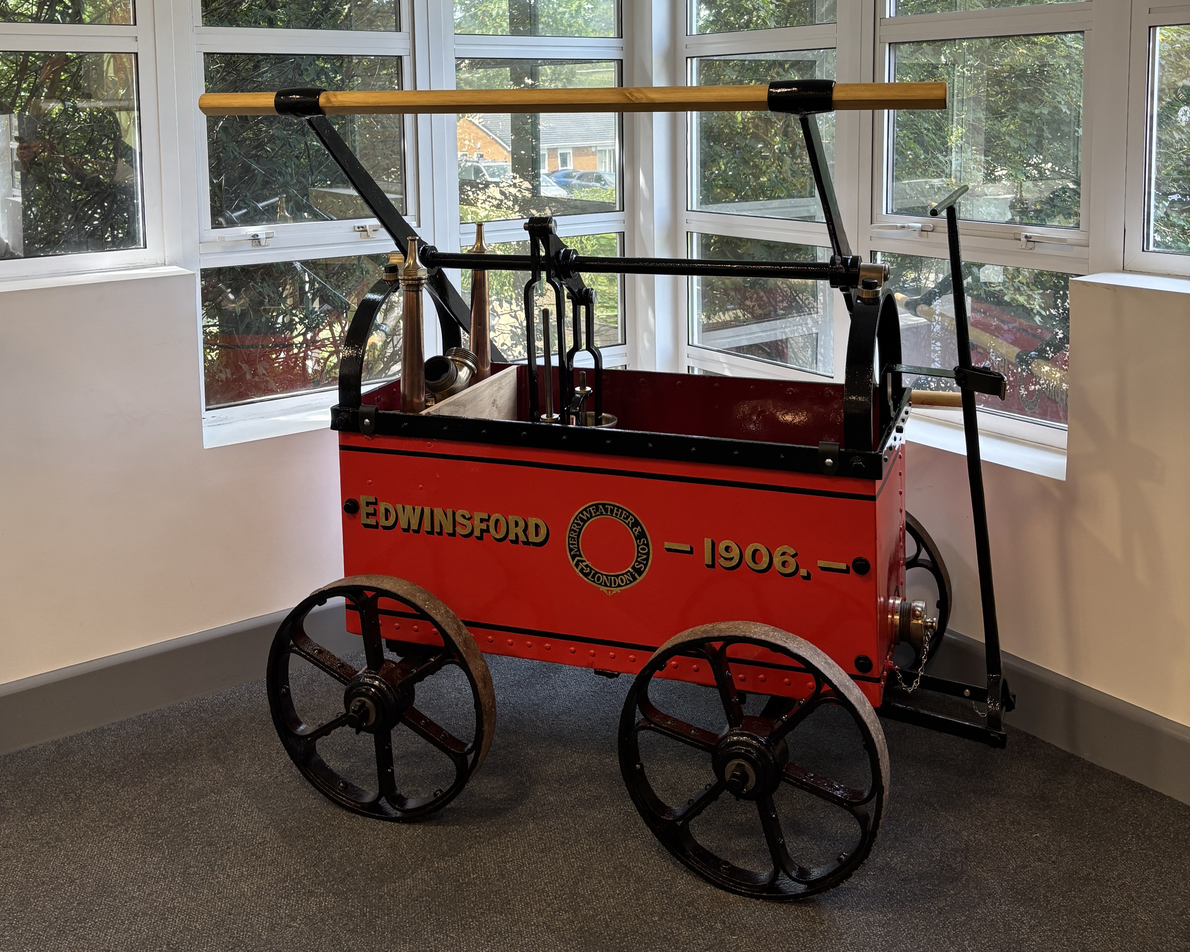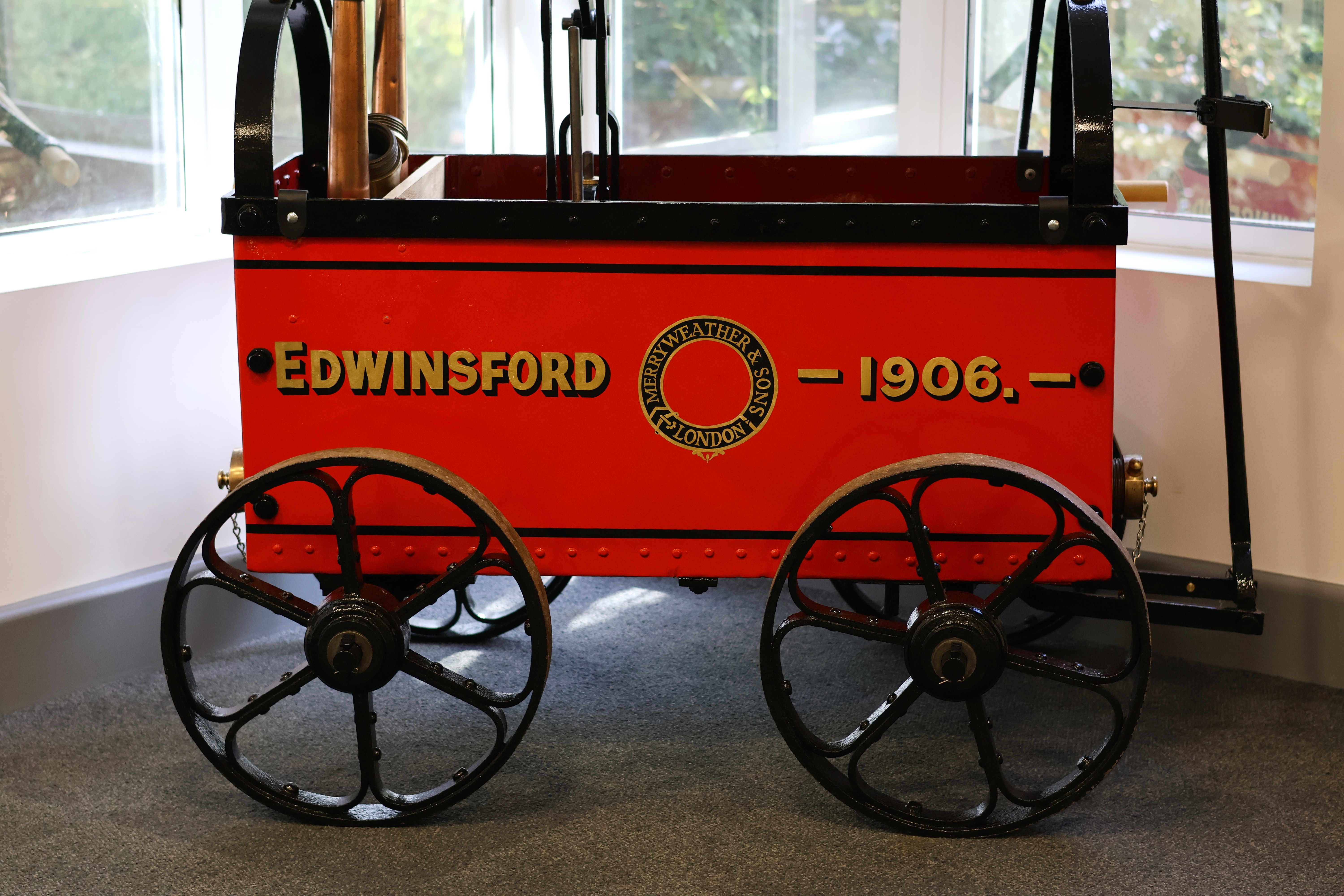 The Merryweather four-person hand pump was commissioned in 1906 by Lord Drummond of Edwinsford Mansion, near Llandeilo, Carmarthenshire. The pump was procured following a serious haybarn fire on the Edwinsford Estate the previous year.